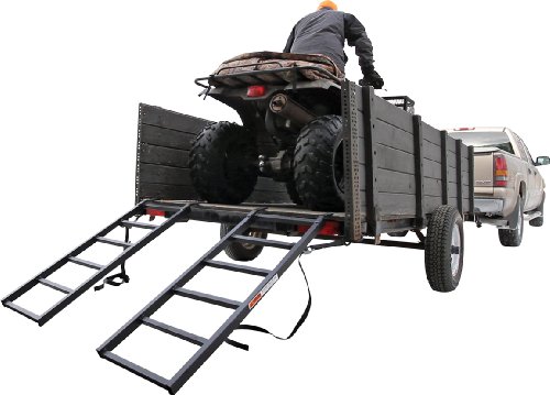These economical trailer ramps are designed for loading ATVs or other equipment with large tires into a trailer. The ramps have a heavy duty steel construction with a powder coat finish and feature 7.25" rung spacing and rubber coated fingers to grip the trailer without scratching it. When not in use, the ramps can be easily stored underneath or next to an ATV. The steel ATV ramps have a 1500 lb capacity and include safety straps.